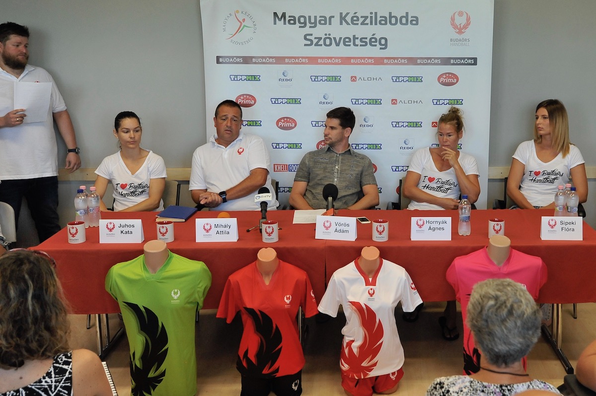A Budaörs Handball szerdán reggelivel egybekötött sajtótájékoztatón mutatta be a BVUSS VIP termében a továbbra is csak magyar játékosokból álló felnőtt NB I-es játékoskeretét.