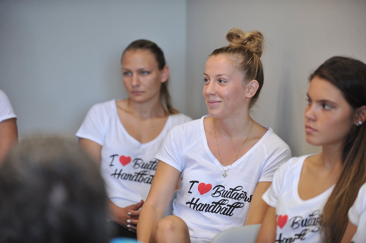 A vezetők után csapatkapitányunk, Juhos Kata az első másfél hét munkájáról számolt be, majd Hornyák Ágnes beavatta a jelenlévőket a felnőtt játékosok szerepéről és felelősségéről a budaörsi utánpótlás nevelésben. Az asztalnál ülők közül Sipeki Flóra kapott utoljára szót, aki sok játéklehetőség reményében igazolt Budaörsre. „Tetszett a klub által felvázolt koncepció, miszerint kizárólag magyar játékosokból álló, hajtós kis csapatot szeretnének látni a pályán.” Kapusunk a siker kulcsát a fiatalos lendület és a rutin megfelelő összecsiszolásában látja.